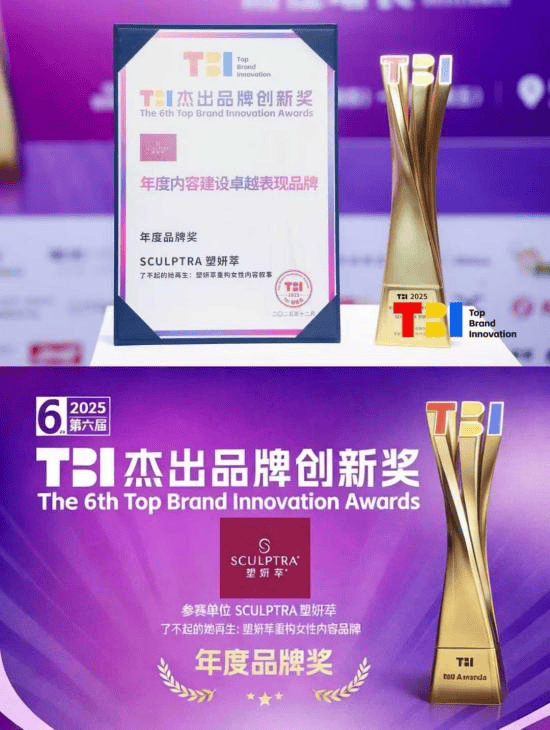 由此,塑妍萃以“再生力”为核心,开启了一场超越产品功能、直击时代情绪的深度沟通,这样创新型的品牌创建、维护与价值增长,也让塑妍萃在由数字营销领域专业媒体平台 TopDigital 主办的 TBI杰出品牌创新节中成功斩获2025年度内容建设卓越表现品牌奖项。